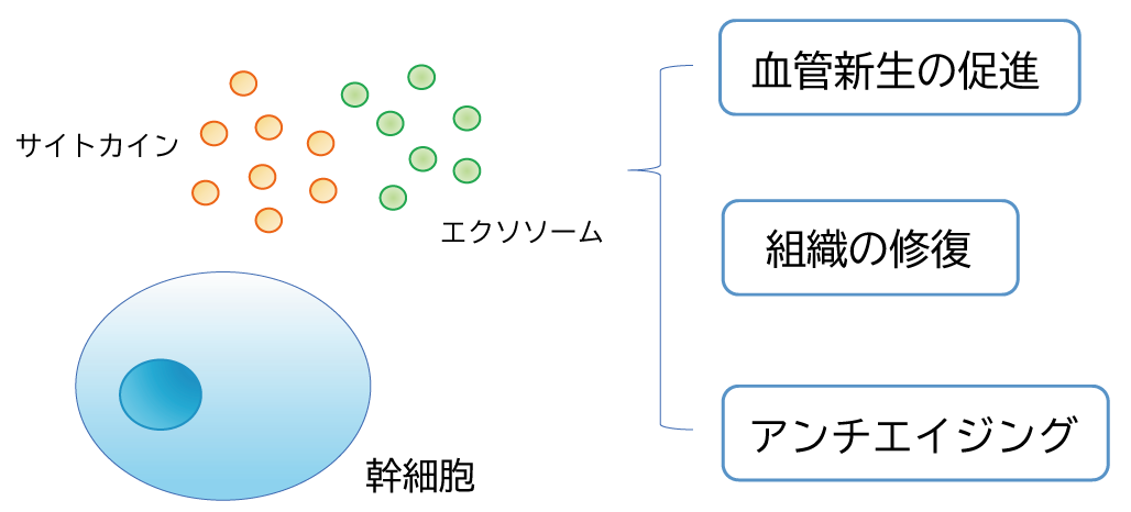 組織の修復(皮膚や筋肉、神経、内臓組織など)を通じて、痛みの回復や、糖尿病、神経疾患(ALSやパーキンソン)、自己免疫疾患、アンチエイジング効果など、数多くの効果が報告されています。