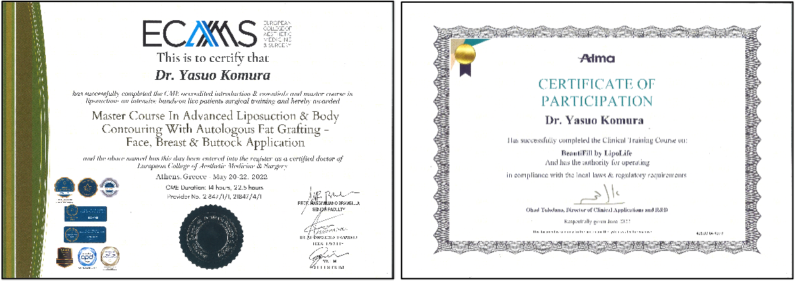 りんくうメディカルクリニック院長の小村医師と、京都御池メディカルクリニック院長の村西医師は、この機器の国際的な研修施設での講習を受講し、認定を受けていますのでご安心ください。