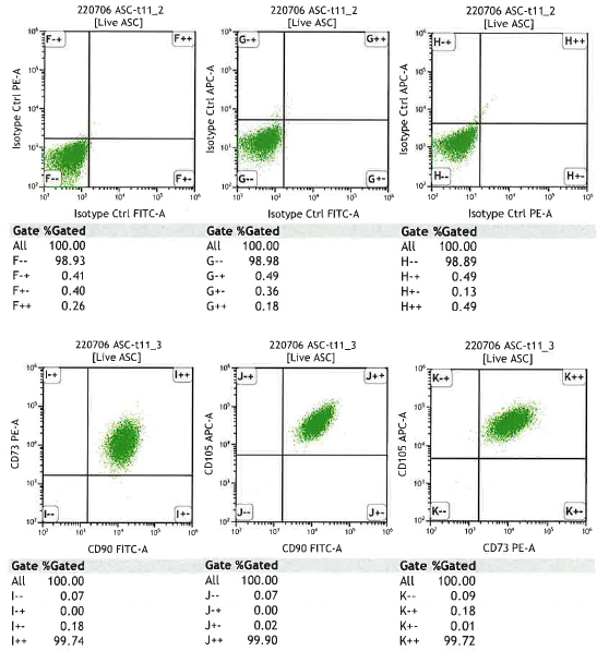 (表面マーカーであるCD73、CD90、CD105がすべて陽性であることを確認しています)