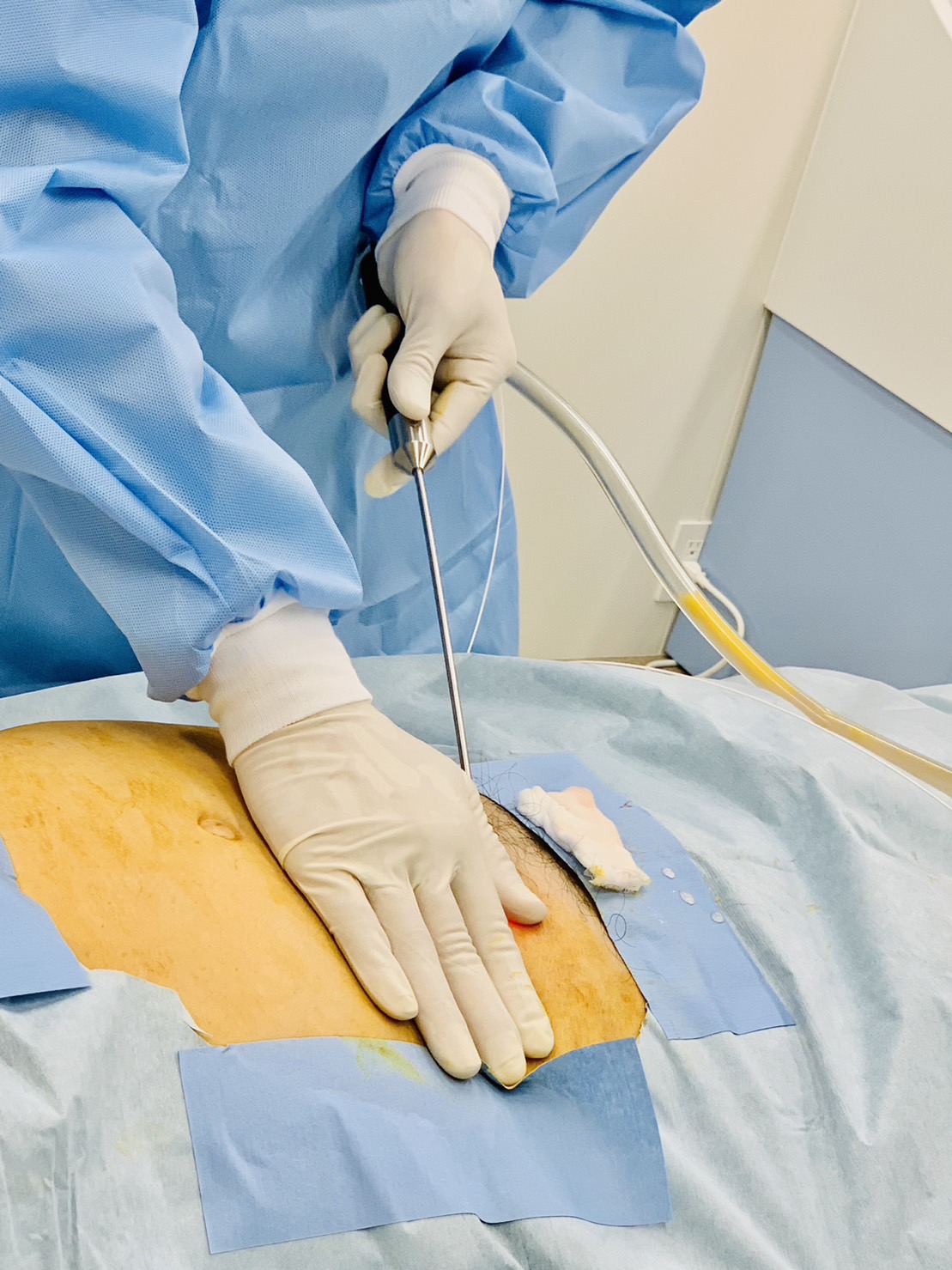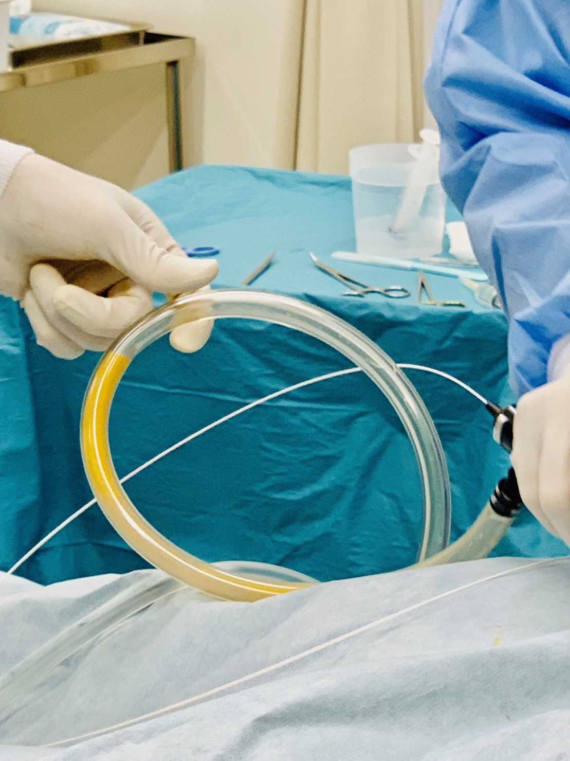 幹細胞採取のための、レーザー式脂肪採取機器です。脂肪採取機器先進国のイスラエルで製造され、米国FDAの認可がとれた最新機器を導入しています。 一般の美容クリニックでの脂肪吸引などよりも、愛護的手技で生存率の高い状態の幹細胞を採取できる機器です。また脂肪組織だけでなく周囲の皮膚や筋肉などを傷つける危険性を低減できます。術後の痛みも少なく、ダウンタイムもほとんどありません。